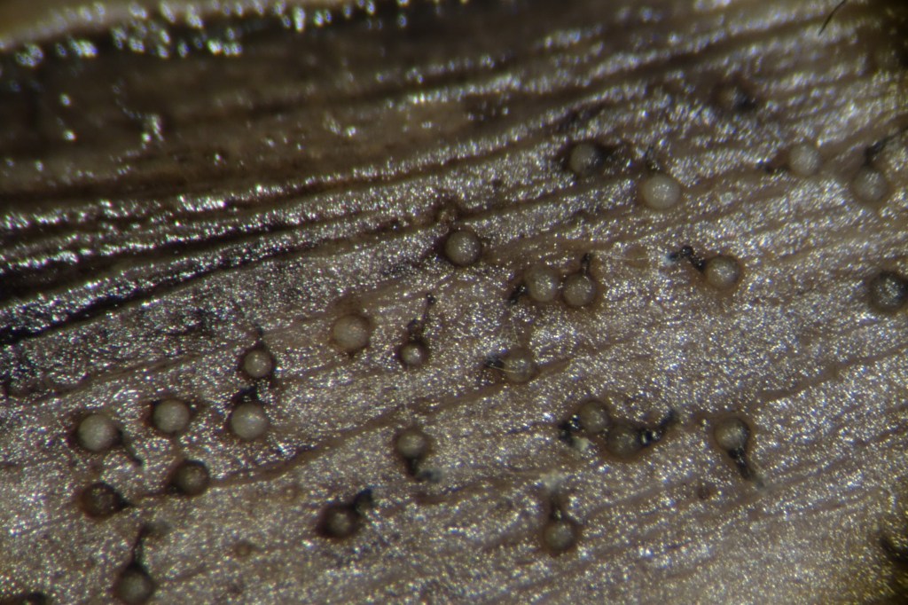 These are the sexual reproductive structures (ascomata) of Sammeyersia grandispora, a common and widespread marine ascomycete, under a dissecting microscope at 25x magnification: